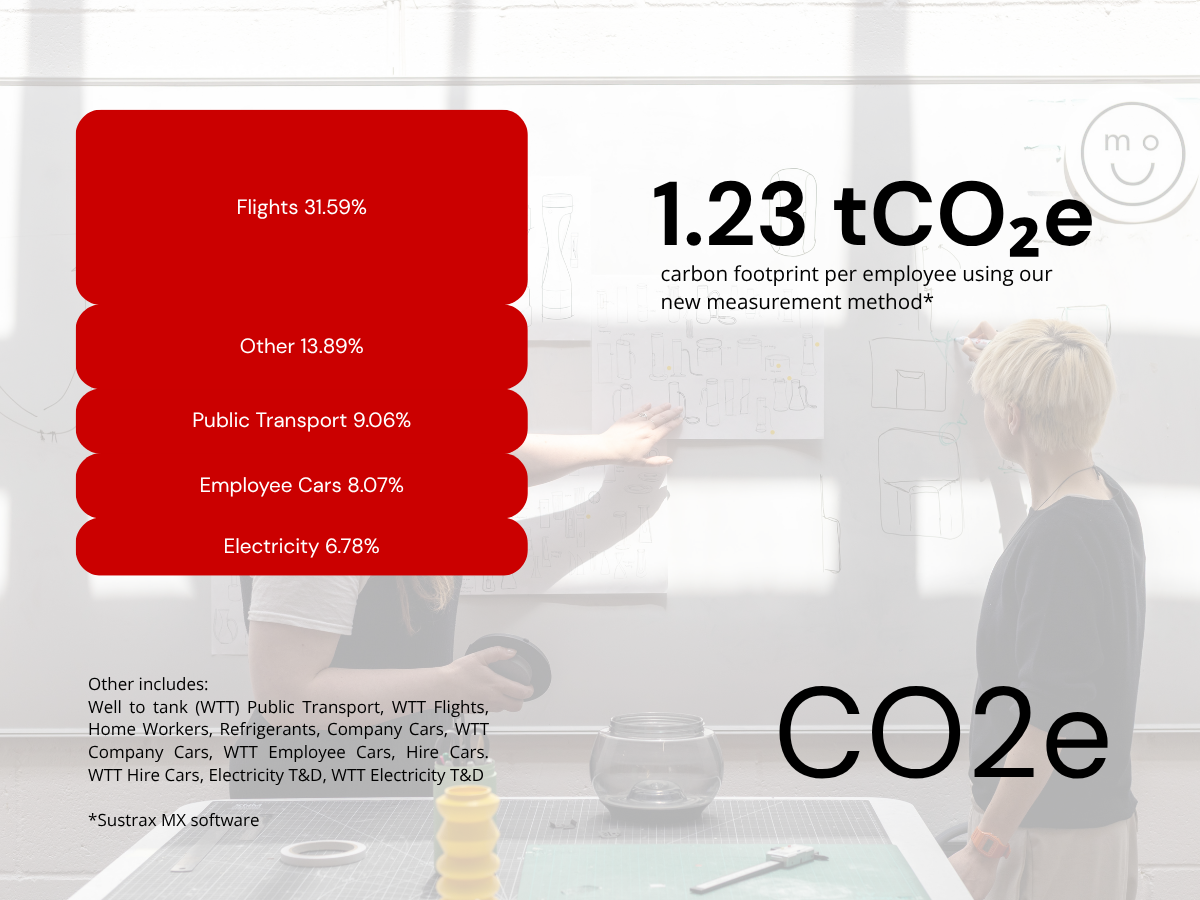 This year we introduced a clearer and more consistent approach to measuring our carbon footprint. The new methodology gives us a stronger foundation for tracking progress in the years ahead. Our emissions reflect the realities of a hybrid team with a shared studio, including flights for our Milan team trip, commuting patterns and home working. The goal now is to use this baseline to make more informed decisions and integrate reduction strategies where they make the most meaningful difference.